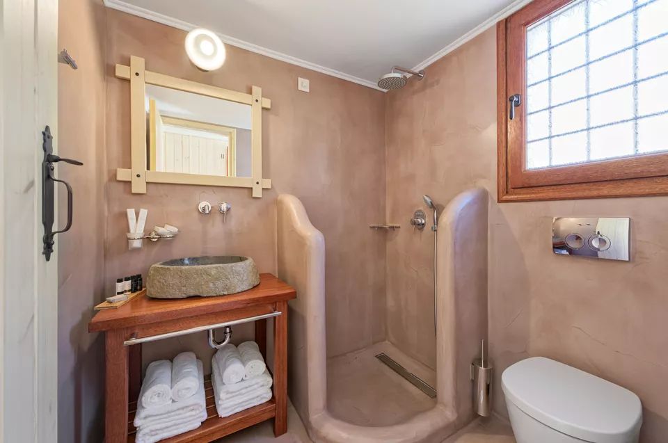 Der Zugang zum Strand erfolgt direkt vom Grundstück. Die Gärten sind mit typisch mediterraner Bepflanzung und Steinarbeit gestaltet und ergänzen das Gesamtdesign. Die Bauweise folgt regionalen architektonischen Prinzipien und gewährleistet so die Einheit mit der Ästhetik der Insel. Die Anlage bietet eine strandnahe Ferienresidenz, die traditionelle Details mit den praktischen Erfordernissen einer Urlaubsunterkunft verbindet.
