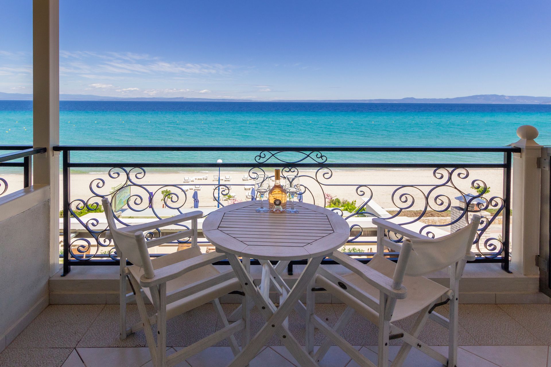 Das hoteleigene À-la-carte-Restaurant serviert Gerichte direkt am Meer, dazu gibt es eine Bar mit umfangreichem Weinkeller für den abendlichen Drink. Das Zentrum von Polichrono ist bequem zu Fuß erreichbar – hier finden Sie traditionelle Tavernen mit frischem Fisch, gemütliche Cafés und Minimärkte für den täglichen Bedarf. Von der Unterkunft aus erreichen Sie leicht die weitere Region Chalkidiki, die für ihr klares Wasser und ihre pinienbewachsene Küste bekannt ist. Der Flughafen Thessaloniki liegt etwa 73 Kilometer entfernt, was die Anreise per Flugzeug unkompliziert macht.