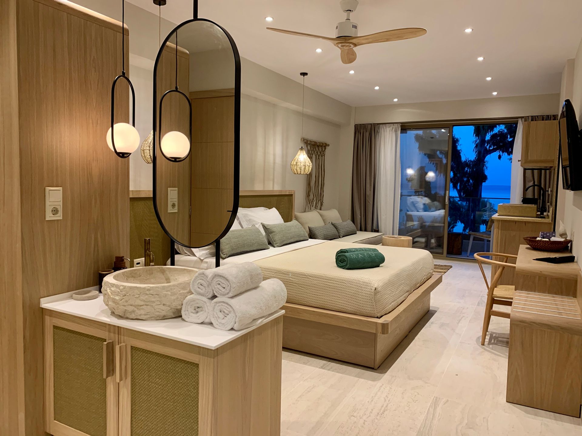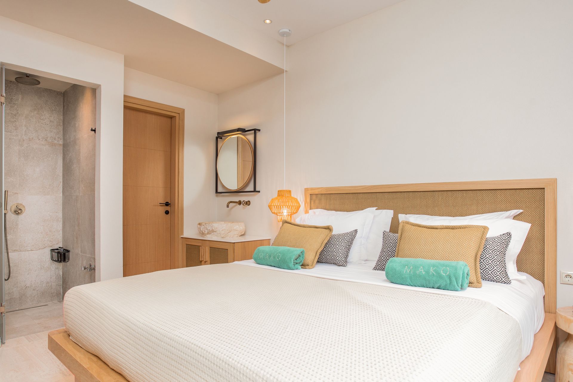 MAKO Sea & Suites ist eine Unterkunft direkt am Meer in Pefkochori, Halkidiki. Die Anlage verfügt über einen privaten Strand und einen direkten Zugang zum Meer. Das Angebot umfasst drei Suiten im Erdgeschoss mit privatem Pool, sieben Suiten mit Meerblick sowie vier Doppelzimmer mit Blick auf das Meer oder den Garten. Alle Einheiten sind entlang der Uferpromenade gelegen. Zur Ausstattung gehören ein zentraler Swimmingpool und eine 360-Grad-Pool-Strandbar. Das Design verbindet Innen- und Außenbereiche miteinander. Die Lage bietet unmittelbare Nähe zum Meer mit Blick auf das Wasser. Die Unterkunft eignet sich für Gäste, die in dieser Region Halkidikis eine Unterkunft mit privaten Annehmlichkeiten und Meereszugang suchen.