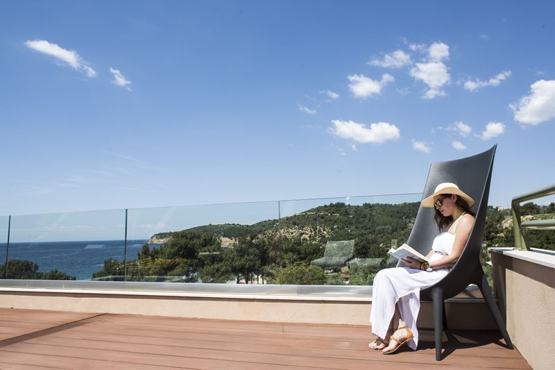 Executive room Sea view is 28m2, with terrace 15m2 includes sun-umbrella, two sunbeds and two armchairs.