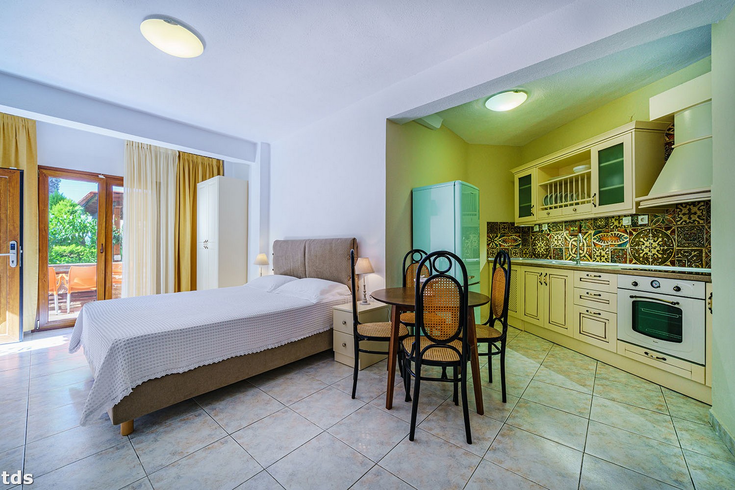 Step outside onto your own private balcony or small yard in the garden, complete with cheerful tables and chairs to enhance the joyful summer atmosphere. Immerse yourself in the calming ambiance of the area and listen to the soothing sounds of the sea, all while enjoying a stylish and hospitable accommodation at Akrathos Houses.