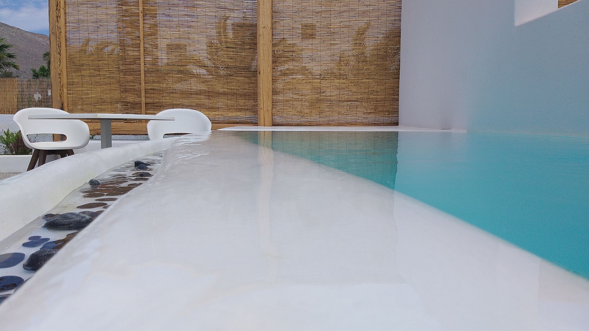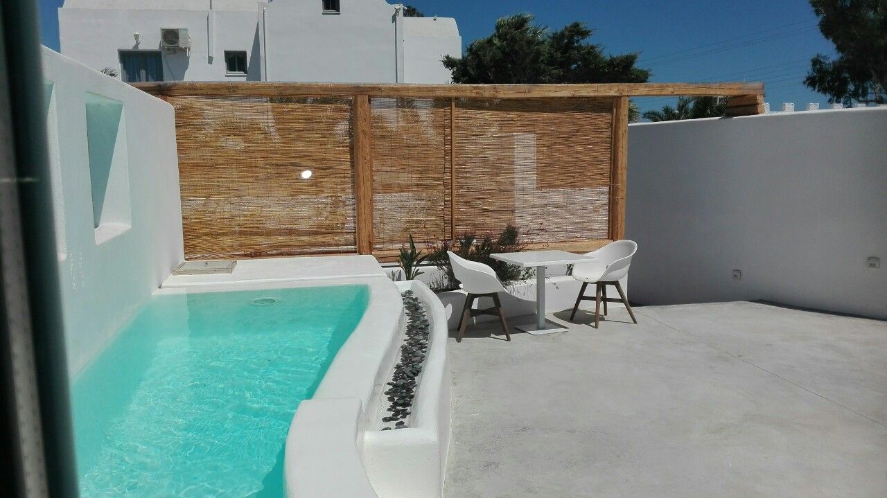 Filira Suites Santorini comprises four elegant suites located on the main road connecting Fira with Perissa beach. Each suite accommodates two or three guests, providing a private and tranquil setting near the beach while maintaining distance from larger tourist areas. The suites feature comfortable beds and well-appointed amenities, with airy interiors that extend to spacious outdoor areas. These outdoor spaces include a private yard along with either a hot tub or a plunge pool, designed for relaxation. The accommodation is positioned in a location that balances accessibility with privacy, making it suitable for guests seeking a serene stay close to coastal amenities. The property's layout emphasizes indoor-outdoor living, with suites that provide both functional indoor spaces and private outdoor retreats. This setup allows for a quiet environment while maintaining proximity to the main transportation route and beach access. The design focuses on creating a peaceful atmosphere with practical features for guest comfort. The suites are configured to support small groups or couples, with amenities tailored to enhance the stay through private outdoor facilities. The location offers straightforward access to the beach and the connection between Fira and Perissa, supporting ease of movement without the intensity of crowded tourist zones. Overall, Filira Suites Santorini presents a selection of suites that combine private outdoor areas with comfortable indoor accommodations in a quiet beachside setting.