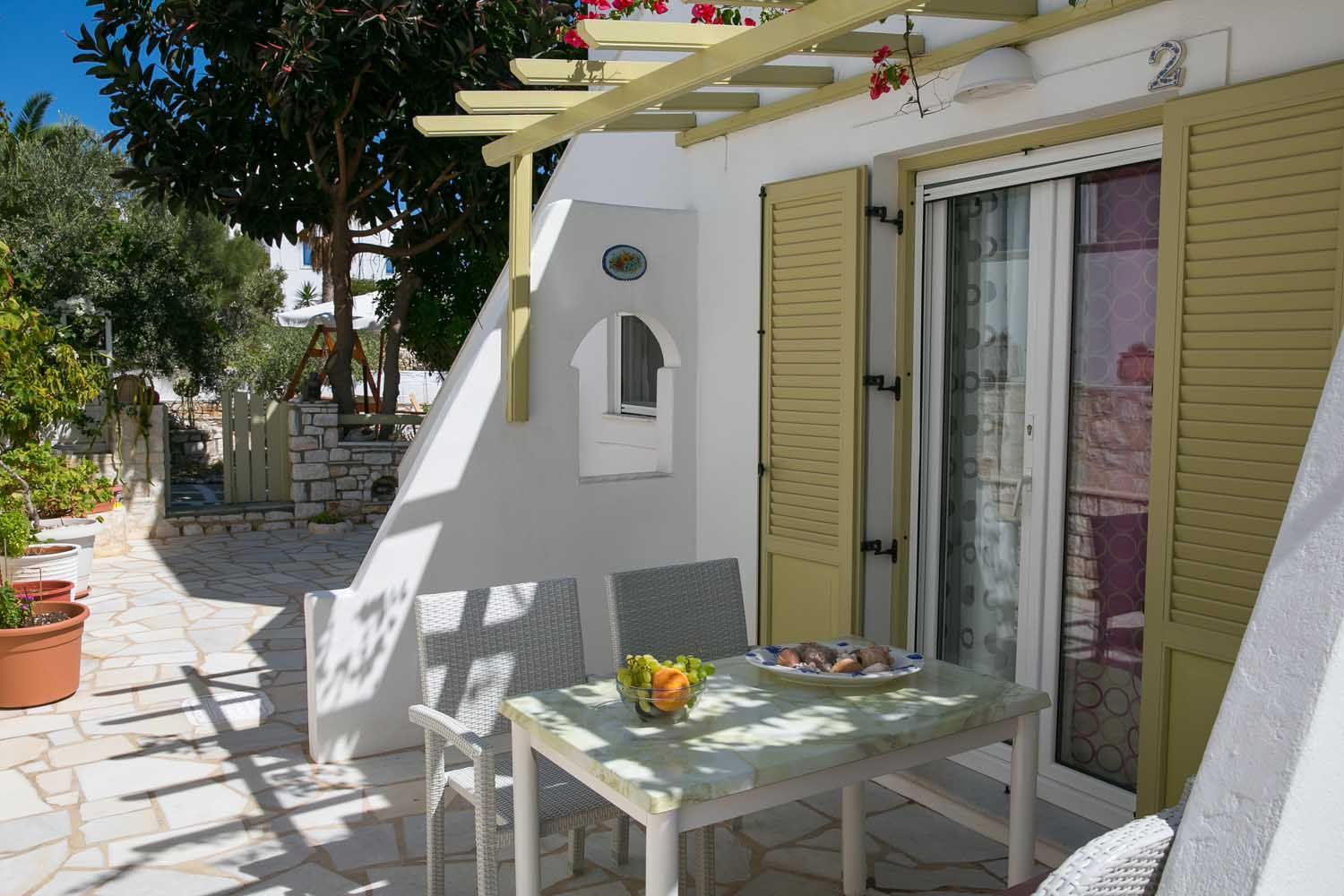 Leonardos Apartments is an accommodation property located in the Agioi Anargyroi area of Paros, near Naoussa. The property offers fully furnished apartments and studios, providing modern facilities for practical living. Apartments accommodate up to four guests, while studios are designed for two or three guests, with each unit featuring a complete set of furnishings and contemporary amenities. The layout focuses on functional living spaces with adequate furnishings to support daily needs. The property is approximately 150 meters from the beach, offering convenient access to the coastline, and the village of Naousa is within a four-minute walking distance, providing easy access to local amenities and services. The accommodation maintains a neutral atmosphere suitable for various types of stays, with standard modern conveniences and a straightforward approach to hospitality services. Units are maintained to ensure clean, functional accommodation, prioritizing basic comfort and convenience. This setup is suitable for short-term or extended stays, emphasizing functionality and accessibility in both design and location.