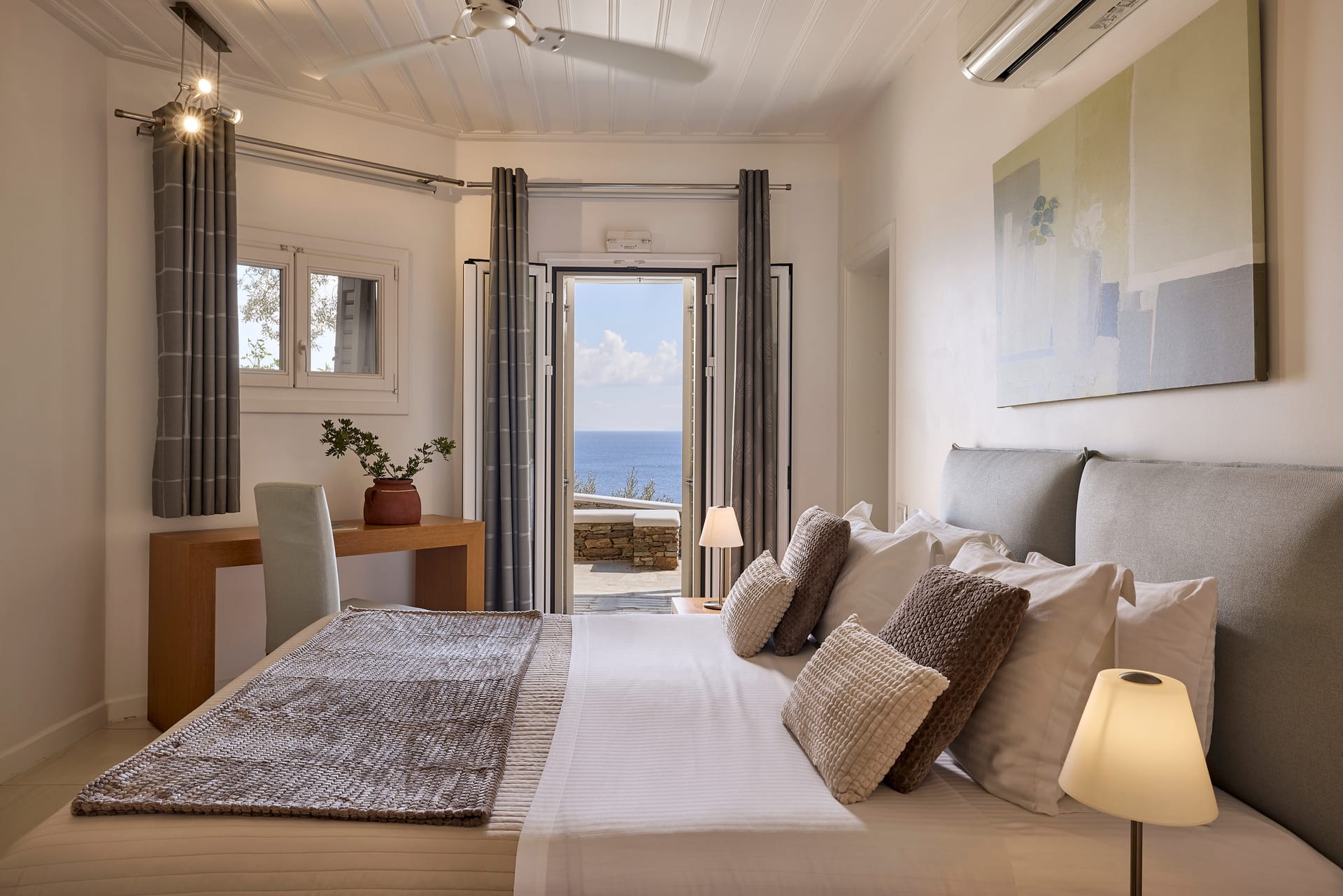 Selana Suites Sifnos is a stone-built boutique hotel located in the Chrysopigi area of Sifnos, set within an olive grove. The property offers spacious rooms and luxury suites, each designed to provide views of the Aegean Sea and the Monastery of Chrysopigi. Private balconies and an elegant terrace allow guests to enjoy these vistas in a calm, open-air setting. The hotel features a seawater infinity pool with surrounding lounge chairs, creating a serene environment for relaxation. Breakfast is served daily, including local products, traditional pies, and homemade pastries. To maintain a peaceful atmosphere, celebrations and parties are not permitted on the premises. Selana Suites is approximately 13.3 km from Sifnos Port, offering convenient access for arrivals. The design emphasizes natural materials and harmony with the landscape, making the hotel suitable for travelers seeking a quiet retreat with scenic views and understated luxury.