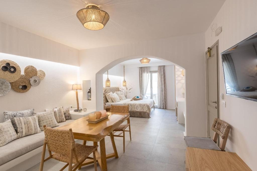 Villa Flora Hotel is a 2-star property located near Agios Georgios Beach in Naxos Town. The hotel underwent refurbishment in 2020 and features eight accommodations, including rooms, suites, and apartments. The design incorporates traditional Cycladic architecture with modern elements, creating a quiet atmosphere. Each accommodation includes standard amenities and is designed for practical use with attention to detail. A breakfast buffet is available each morning, featuring local products such as homemade marmalades, fresh bread, Greek yogurt with honey and nuts, cheeses, eggs, omelets, and pastries. Dietary requirements can be accommodated upon request. Private parking is available approximately 100 meters from the hotel, and concierge services are offered. The property maintains a professional standard for guest stays, suitable for various guest types including families, couples, and groups. The neighborhood is tranquil with access to Naxos Town, and the beach is nearby with sand and water. The hotel operates with a focus on hospitality and comfort, providing all features as available without promotional emphasis.