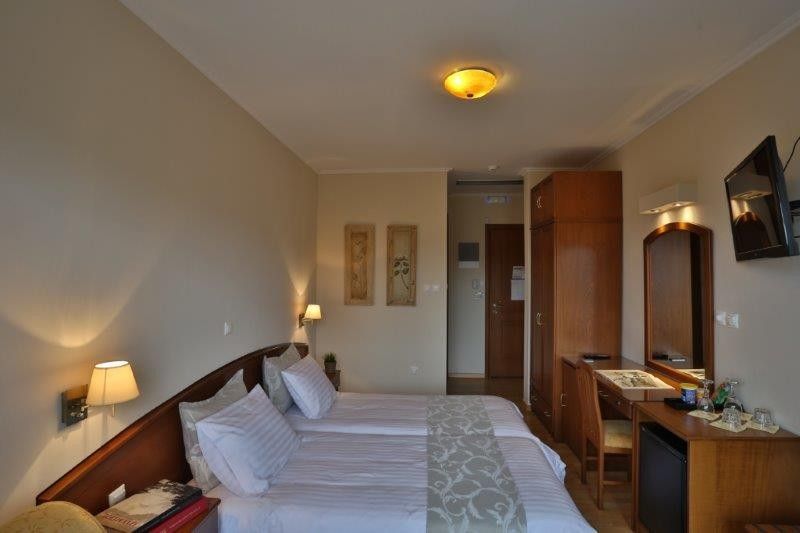 Offers free Wi-Fi and a private balcony overlooking Mount Olympus. Includes a minibar and a flat-screen TV with cable channels.