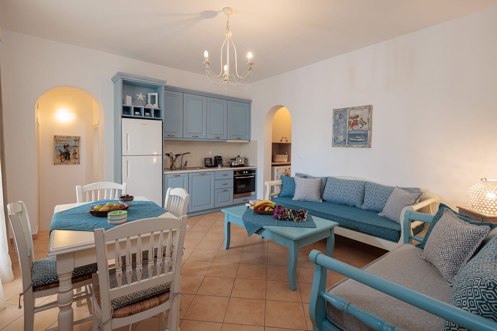 Στο εσωτερικό, τα διαμερίσματα προσφέρουν ένα γαλήνιο καταφύγιο με σύγχρονες ανέσεις και λειτουργικές διατάξεις. Κάθε μονάδα είναι εξοπλισμένη για να διασφαλίσει μια άνετη διαμονή, με καλά διαρρυθμισμένους χώρους που συνδυάζουν σύγχρονες παροχές με παραδοσιακή γοητεία. Η πρόσφατη κατασκευή του κτιρίου σημαίνει ότι όλα βρίσκονται σε άριστη κατάσταση, από τον εξοπλισμό έως τη συνολική υποδομή, προσφέροντας στους επισκέπτες μια αξιόπιστη και ευχάριστη εμπειρία.