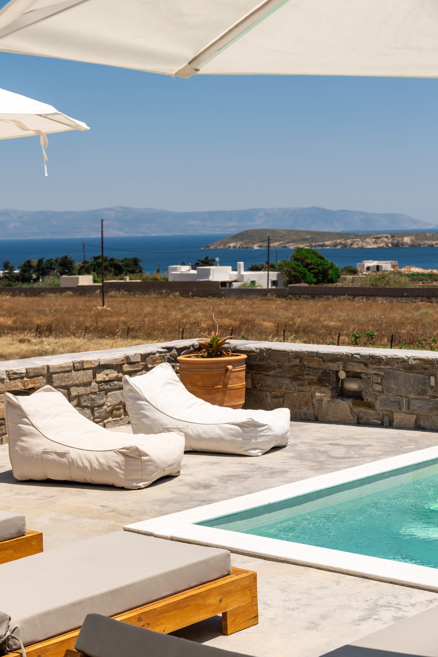 Οι Cycladic Breeze Villas στο Δρυό της Πάρου προσφέρουν δύο ξεχωριστές βίλες με ιδιωτικές πισίνες και θέα στο Αιγαίο. Κάθε βίλα σχεδιάστηκε με τέσσερα υπνοδωμάτια, καθένα με ιδιωτικό μπάνιο, φιλοξενώντας άνετα έως και οκτώ άτομα. Συνολικά, το συγκρότημα μπορεί να φιλοξενήσει ομάδες έως δεκαέξι ατόμων, ιδανικό για μεγάλες οικογένειες ή φίλους που ταξιδεύουν μαζί. Οι βίλες βρίσκονται σε απόσταση περπατήματος από την παραλία Λολαδώνη, με μια δεκαπεντάλεπτη βόλτα μέσα από το τοπικό τοπίο. Η τοποθεσία προσφέρει εύκολη πρόσβαση σε πολλές από τις γνωστές παράλιες περιοχές της Πάρου και σε κοντινά παραθαλάσσια χωριά, επιτρέποντας στους επισκέπτες να ανακαλύψουν τον χαρακτήρα του νησιού στο δικό τους ρυθμό.