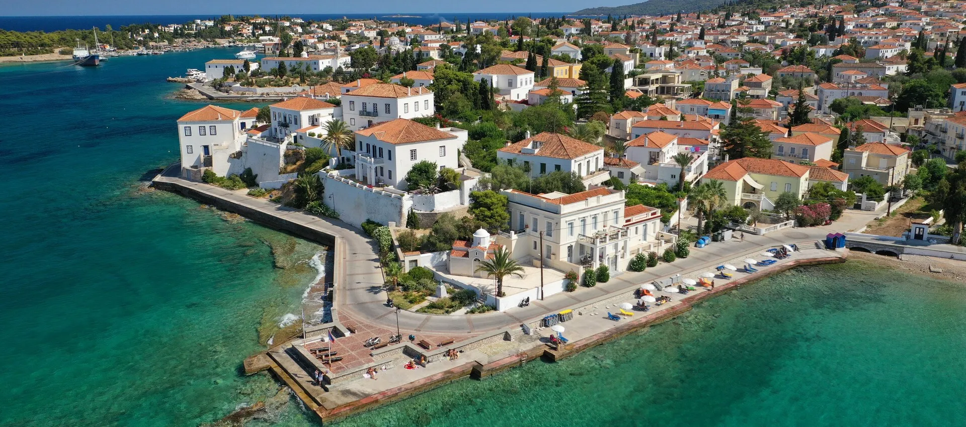 Spetses is an island in the Saronic Gulf, located off the eastern coast of the Peloponnese and known for its preserved architecture and limited vehicle traffic. Accommodation on Spetses includes neoclassical hotels in Spetses Town (Dapia), guesthouses in Kasteli and Kounoupitsa, and villas in more residential areas such as Agia Marina. Many accommodations are within walking distance of the port, shops, and waterfront dining areas, while others are positioned along the coastal road that circles the island. Beach access is generally via small coves and organized beaches, with some properties offering direct proximity to the sea. Spetses attracts visitors looking for a compact island with cultural events, walking routes, and easy connections to the mainland. Accommodation options range from simple rooms to higher-standard boutique hotels, suitable for short breaks and longer stays.
